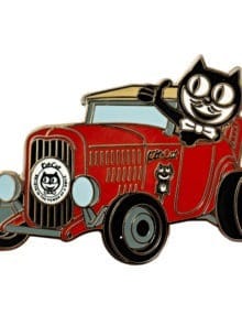 The Kit-Cat Klock Charm comes in black and is approximately 1.5″ tall, from the tip of the tail to tip of ears. He has silver highlights and plate chain bracelet. The bracelet is approximately 7-3/4″ long with a toggle clasp. Also included is the silver “Smile” charm, about 1″ long. There’s plenty of links left for adding other colored Kit-Cat Charms; you can collect them all! Present the bracelet as a gift in its lovely velvet gift box.
